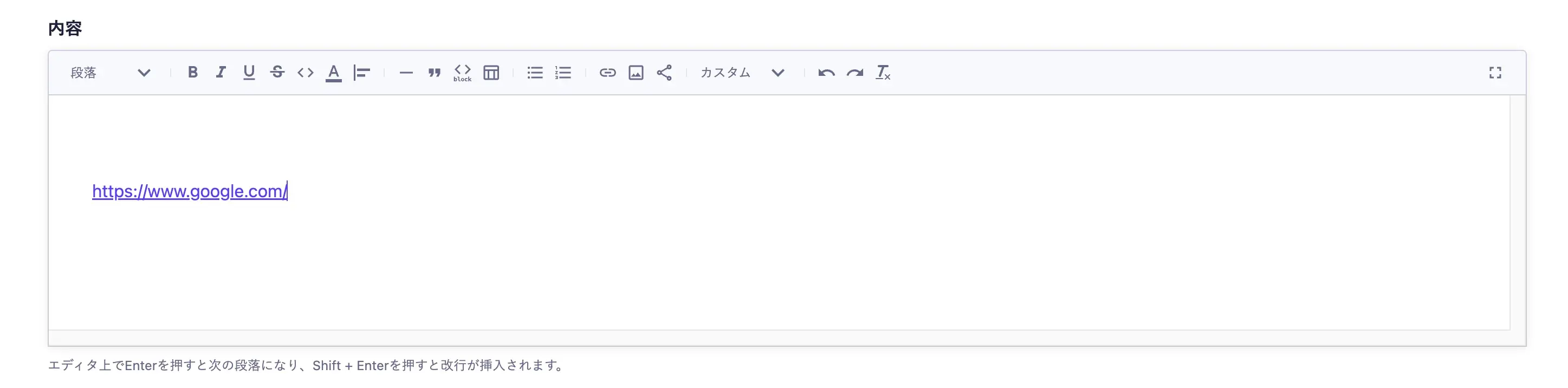 リッチエディタ上に上画像のようなリンクがある場合